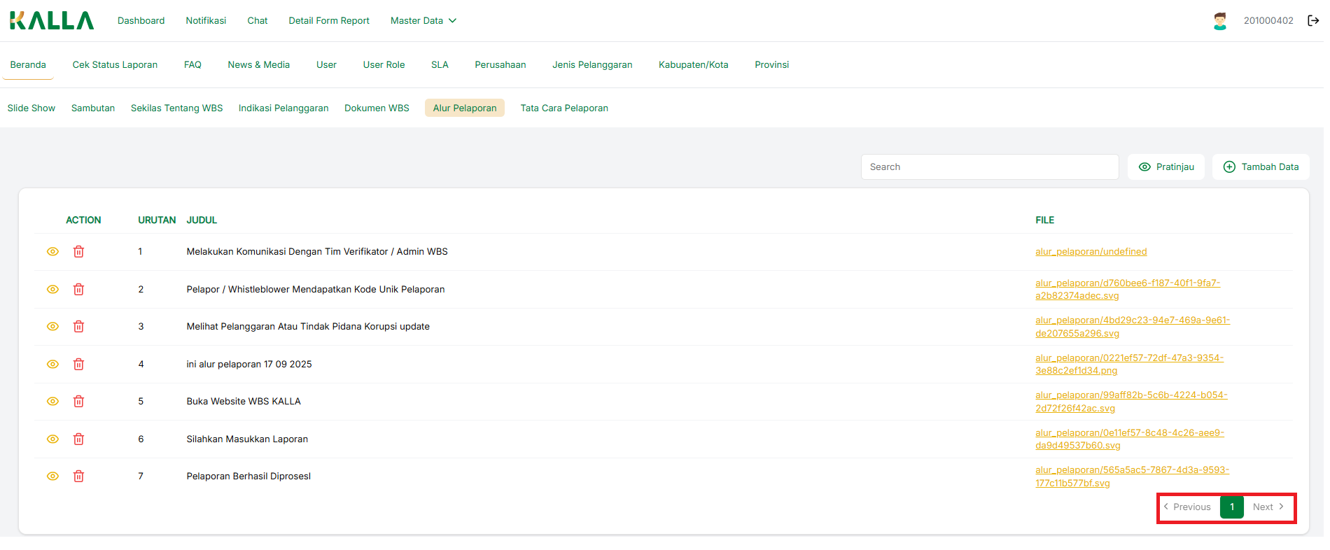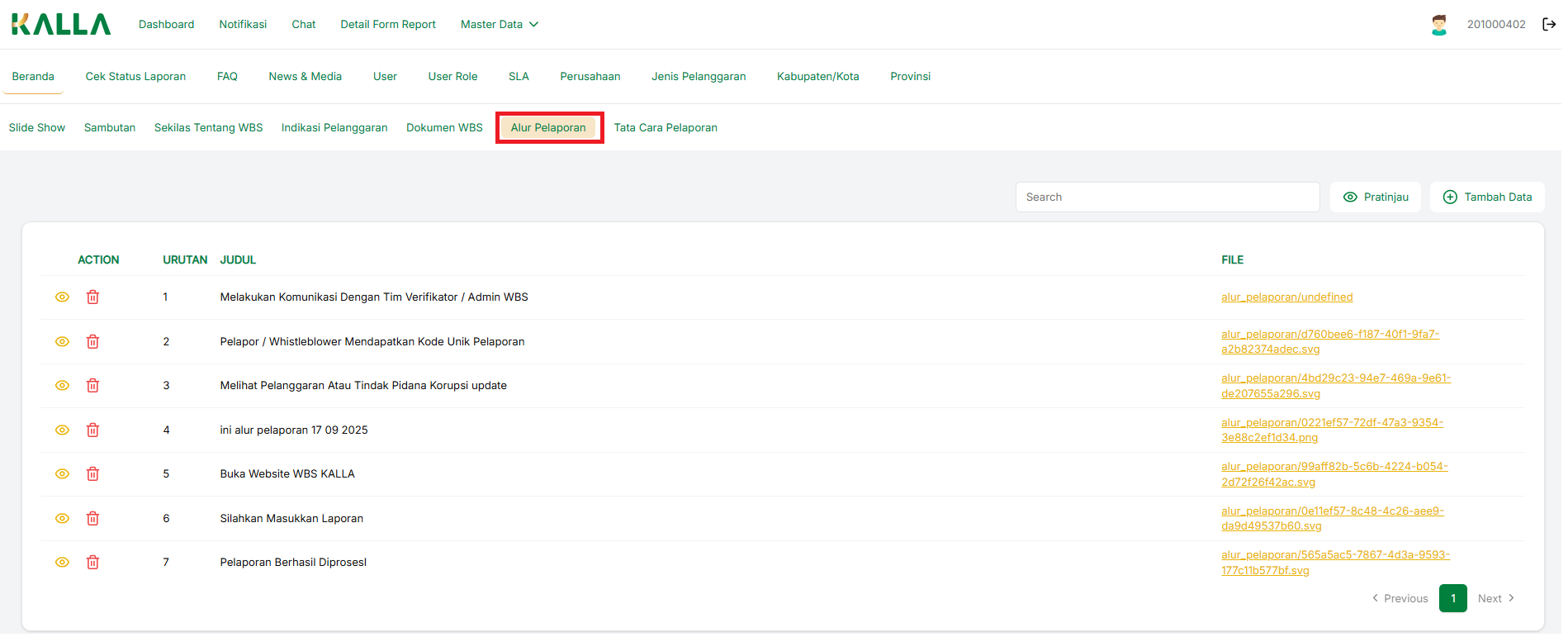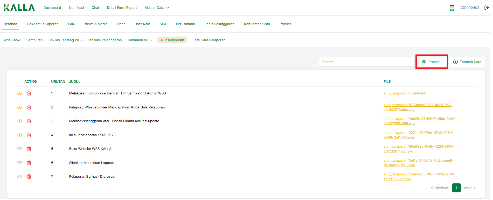 6. Untuk mengedit isi pada Alur Pelaporan, tekan ikon Mata App Screenshot