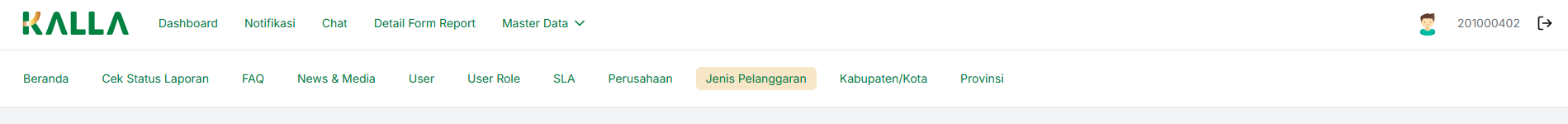 Untuk mengakses menu Jenis Pelanggaran, kita perlu membuka sub menu yang ada pada master data