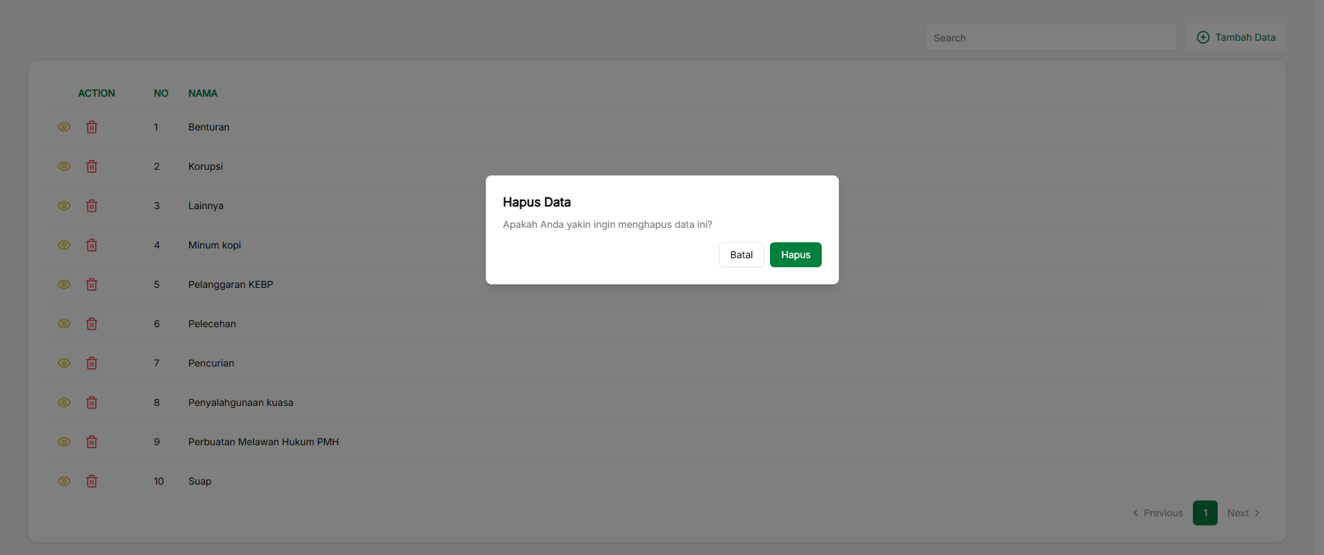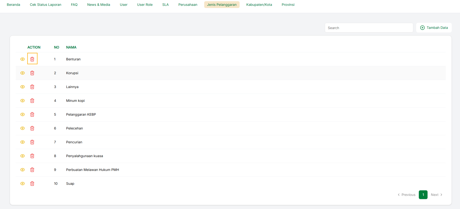 Untuk menghapus data Jenis Pelanggaran yang sudah ada, kita bisa menekan tombol dengan icon