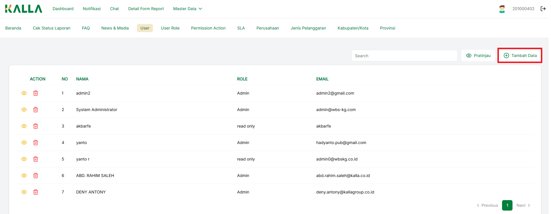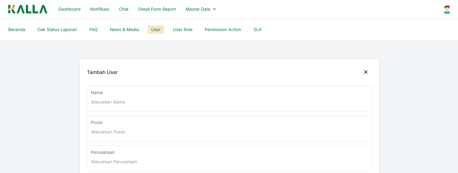 Untuk membuat data User baru, kita bisa menekan tombol Tambah Data